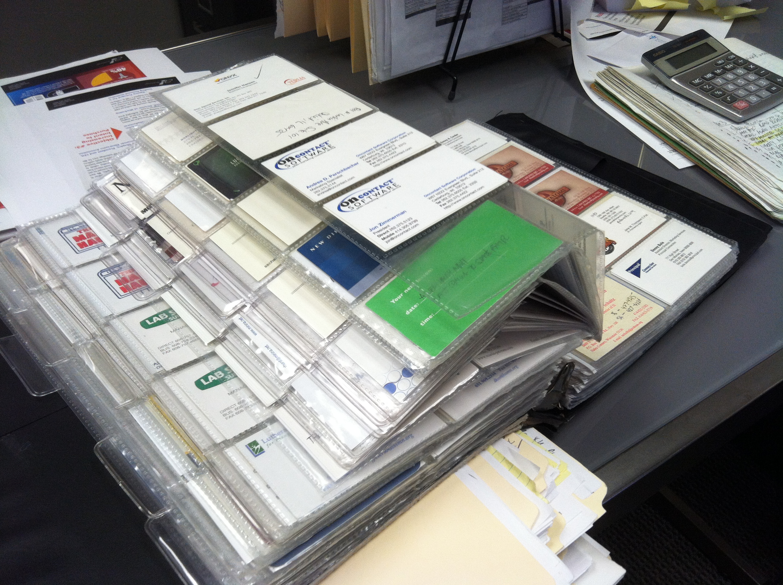In the not so distant past, most everyone relied on a good old fashioned binder like this one to stay organized with their business connections so they had contact information at the ready.